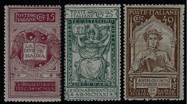 Figura 4. Serie filatelica dedicata a Dante emessa dalle Poste Italiane nel 1921.
