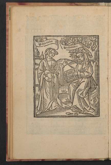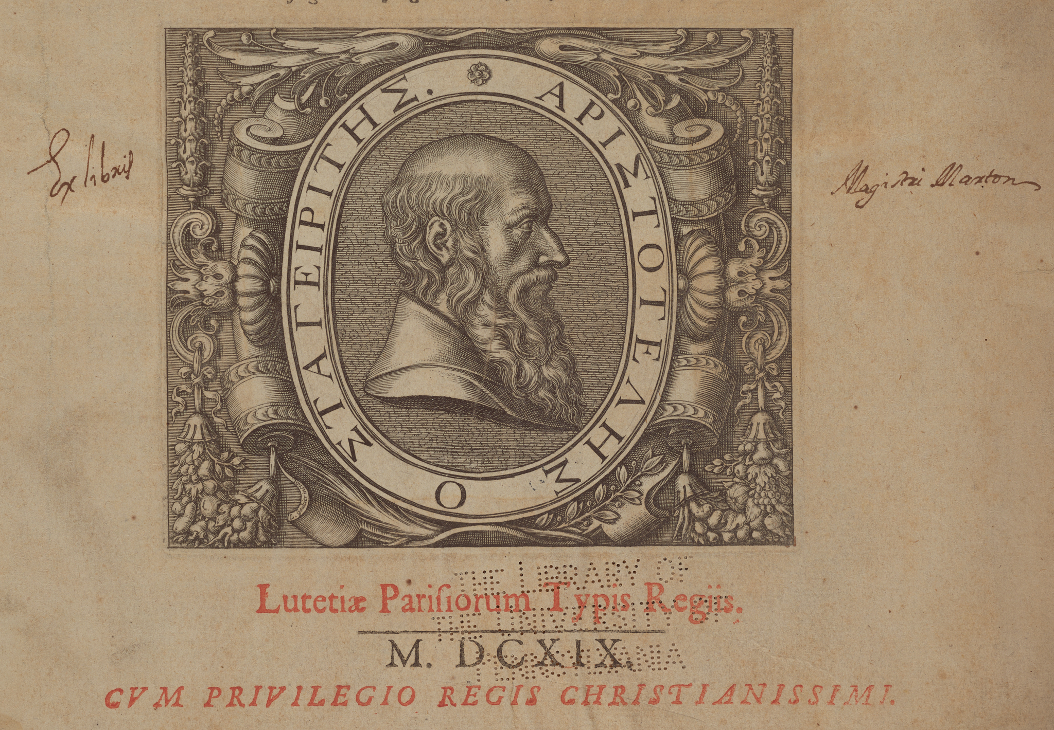 Often, but not always, Aristotle is shown with a full beard. Often, but not always, he is holding a book or a pen. Often, but not always, he is together with his most famous student, Alexander the Great. His clothes and hat (or lack thereof) change depending on the artist and the perception they had of Greek culture. Sometimes the image is helpfully labeled so that Aristotle's identity is clear. At other times, it seems as if any man could be "The Philosopher."