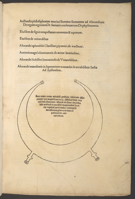 UploadedXO26 Aristotelis philosophorum maximi secretum secretorum ad Alexandrum. De regum regimine: De sanitatis conseruatione: De physionomia. Eiusdem de signis tempestatum uentorum & aquarum. Eiusdem de mineralibus. Alexandri Aphrodisei clarissimi p[er]ipatetici De intellectu. Auerrois magni co[m]mentatoris de anima beatitudine. Alexandri Achillini Bononiensis de Vniversalibus. Alexandri Macedonis in septentrione monarche de mirabilibus Indiae ad Aristotelem.