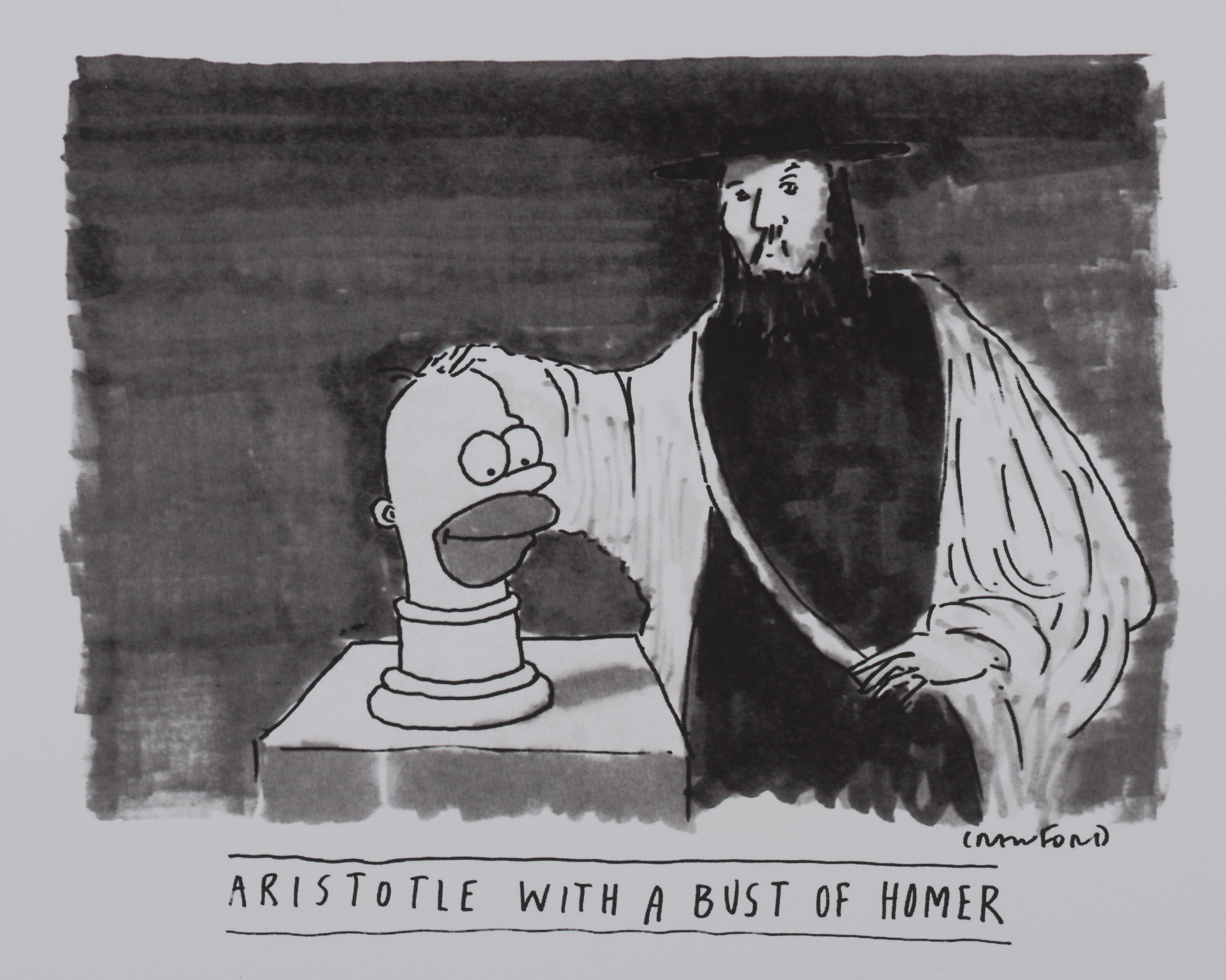 Aristotle is all around us. The reinvention of Aristotle continues to this day in popular culture, literature, television, cartoons, and the kitschy art that clashes frightfully with the gorgeous old tomes on display here. We hope that you encounter these versions of Aristotle with the knowledge that they are part of a long tradition not only of reading "The Philosopher" but most importantly of making him our own.