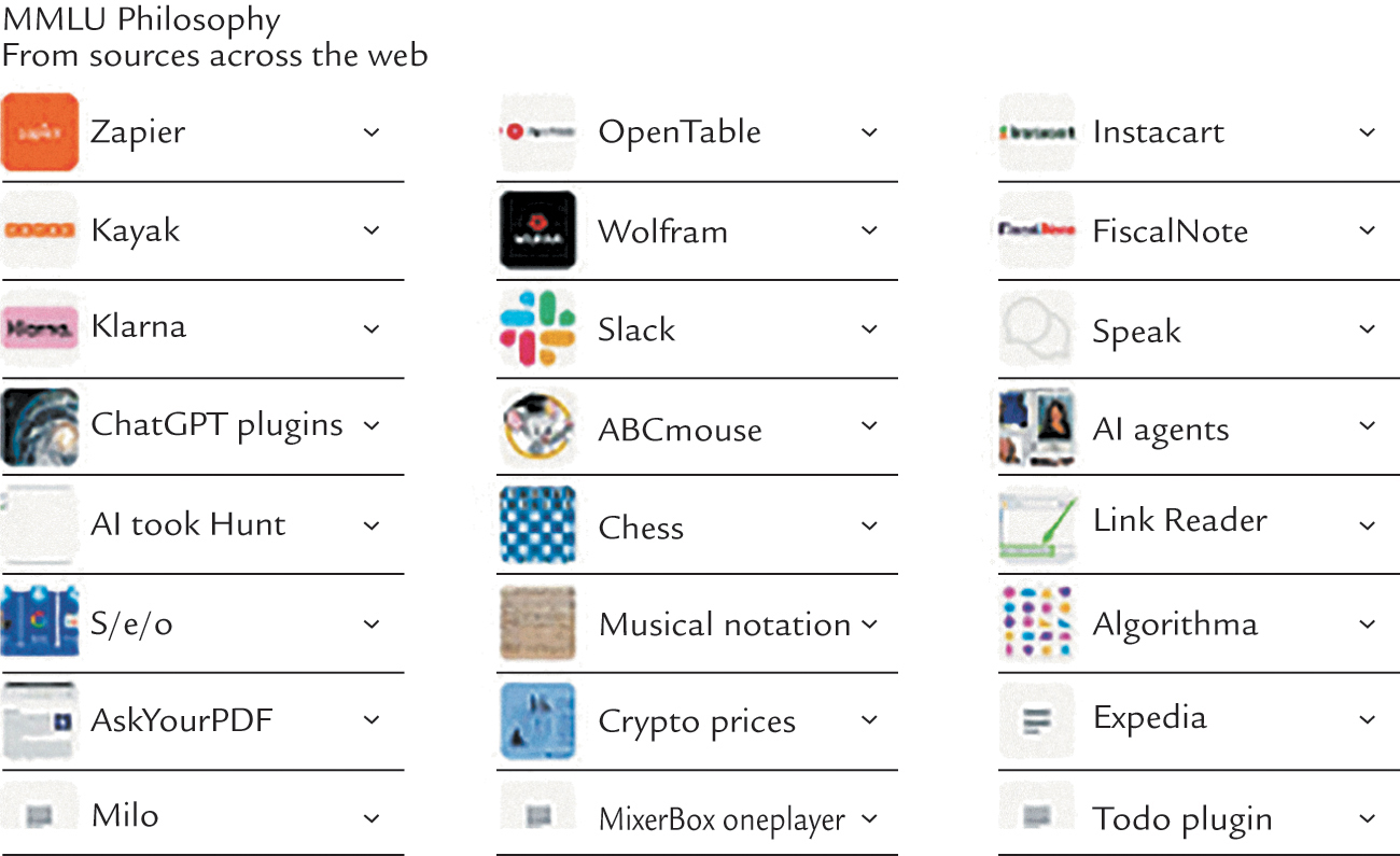 Figure 8.10. Small sample from approximately a thousand plugins accessible to GPT. From the OpenAI website.