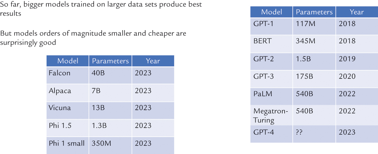 Figure 8.15. Sizes and year of release of various generative AI models. Created by Tom Mitchell.