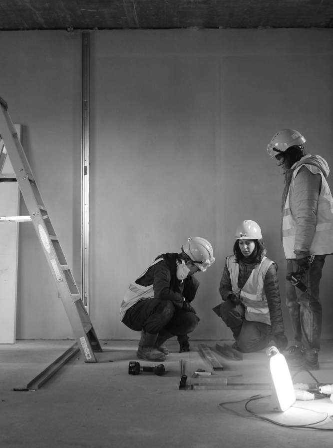 It was during a fourth workshop packed with content on both sustainability and self-build that RUSS tried to get a detailed sense of how versed residents were in construction on the one hand, and how interested they were in self-build on the other. It included an extensive survey of the residentsā motivations and desires for self-build. Many of their answers reflect anxieties about the responsibility of taking on such a venture: āIf I sign up for 15% equity (to be accomplished through self-build) what happens if I cannot commit? If I can only work two days a week? Can someone else cover for you?ā Other responses sound more confident and speak to larger ambitions.ā Can I learn to do foundations? ā These survey responses were an important working document for RUSS in structuring the self-build process at Church Grove. It was clear that many residents would have limited time to devote to construction because of job and family obligations and needed to control their scope of work; and RUSS then tried to plan accordingly.