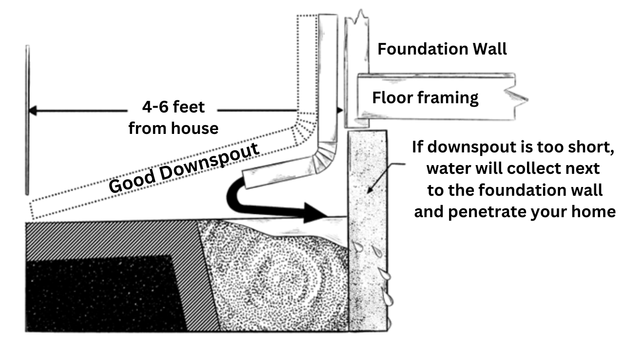 Roofs and gutters are very important for your home as they help divert moisture away from your home’s foundation and basement and prevent flooding and mold growth, especially during storms. They also of course provide shelter and protect you and your home from storms. A gutter is a shallow trough that is attached to the bottom of your roof and used to direct whatever away from your house. This water is directed through a downspout, a vertical pipe attachment that leads water down and away from your home (as seen by the image to the right), and to the ground. If you want to preserve the water that flows through your downspout, you can purchase a rain barrel to catch the water and use it to water your garden or grass. Many cities such as Philadelphia will provide rain barrels for free through programs such as Green City Clean Waters.