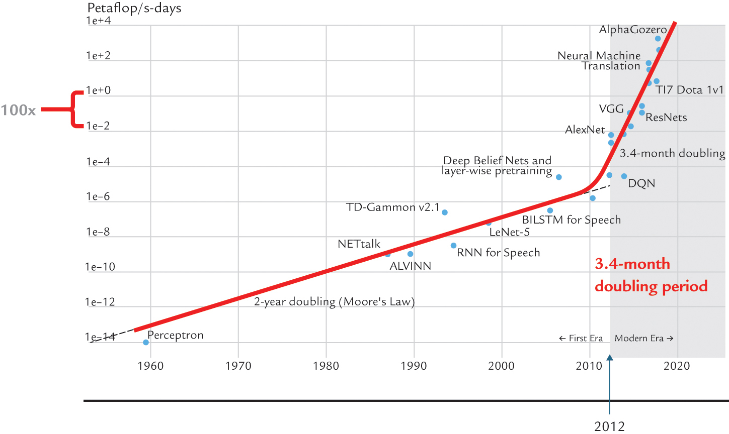 Figure 3.1. Compute versus machine learning model. Graphic from “AI and compute,” OpenAI, May 16, 2018, https://